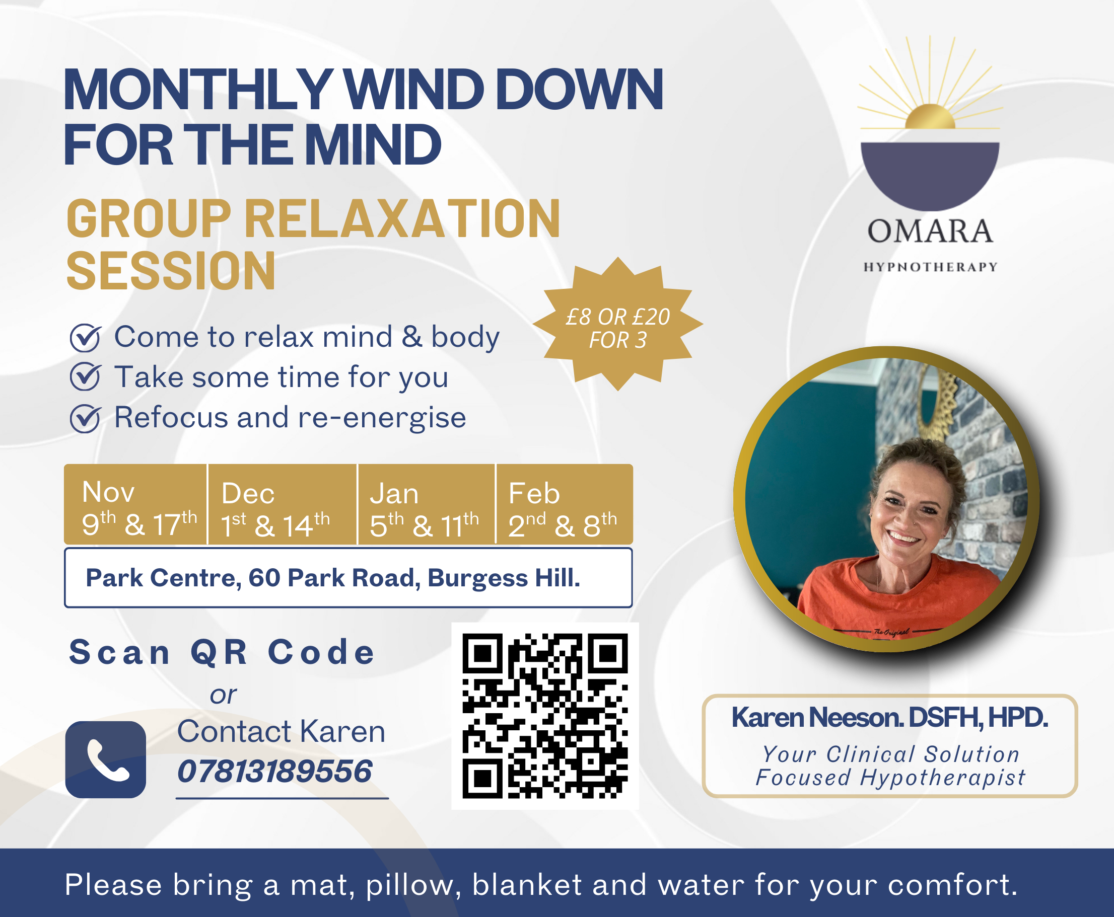 Welcome to Omara Hypnotherapy and its founder Karen Neeson, a Clinical Solution focused Psychotherapist, Hypnotherapist and advanced EFT Practitioner.
