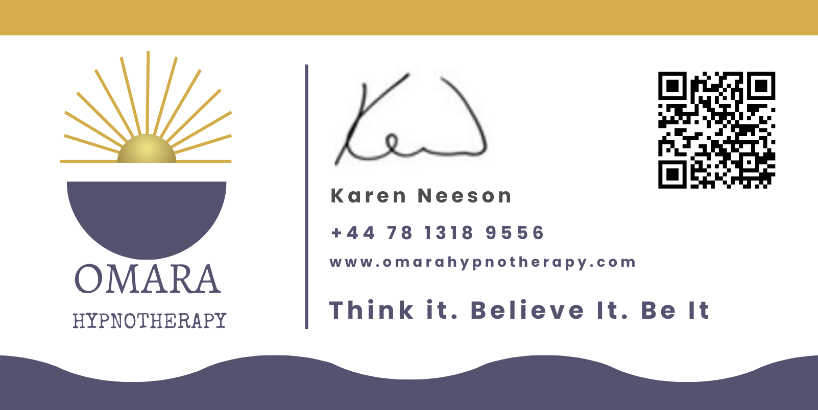 Welcome to Omara Hypnotherapy and its founder Karen Neeson, a Clinical Solution focused Psychotherapist, Hypnotherapist and advanced EFT Practitioner.